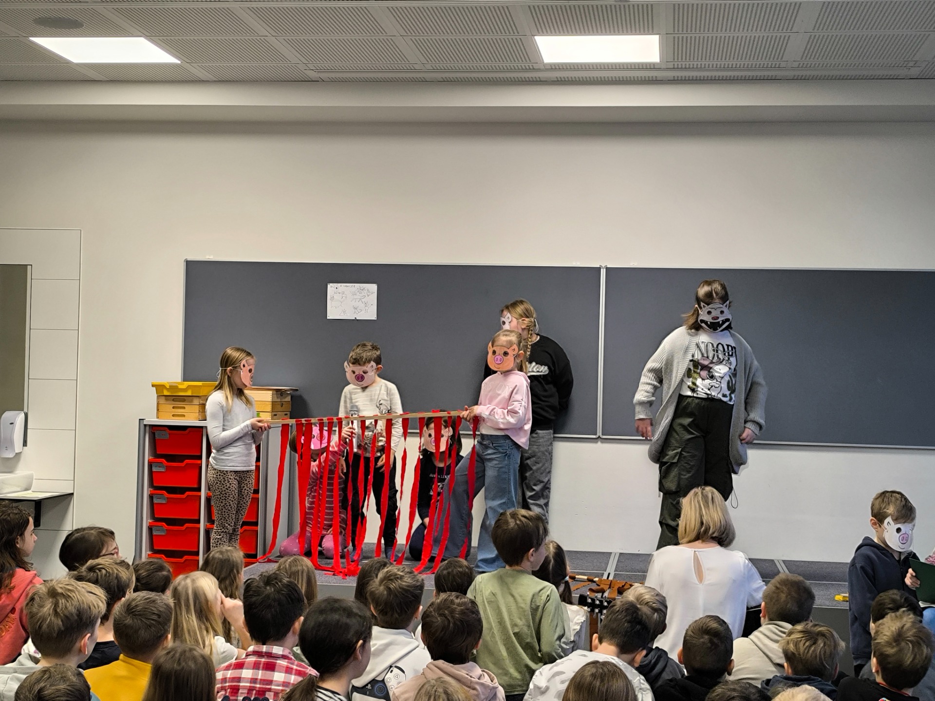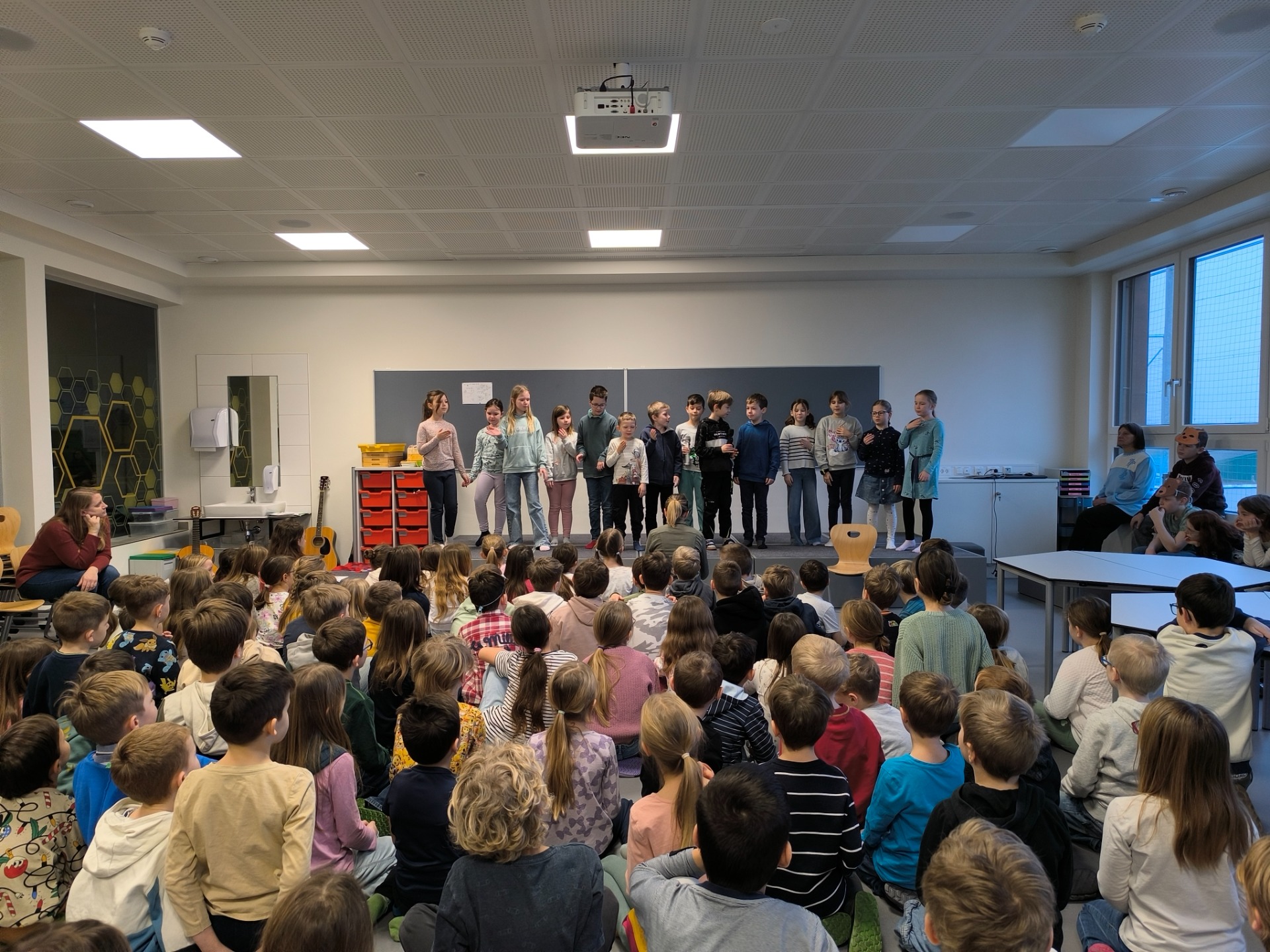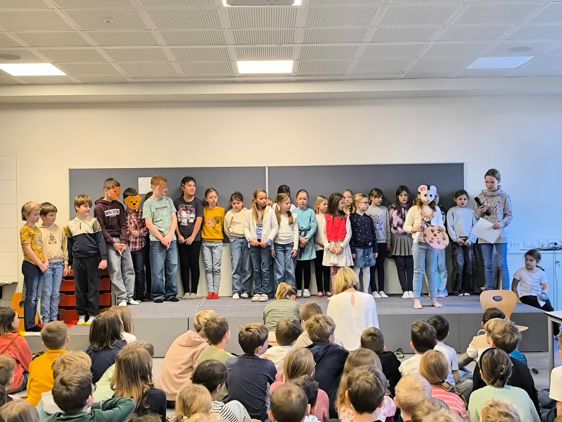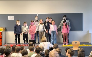 Bei der Schulversammlung im Jänner wurden neben Beiträgen der Klassen auch 2 Theaterstücke (Darstellendes Spiel und Chor) präsentiert.